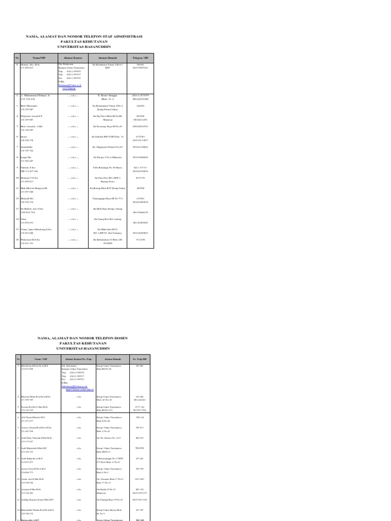 Nama Alamat Dan Nomor Telepon Dosen Dan Staff Universitas