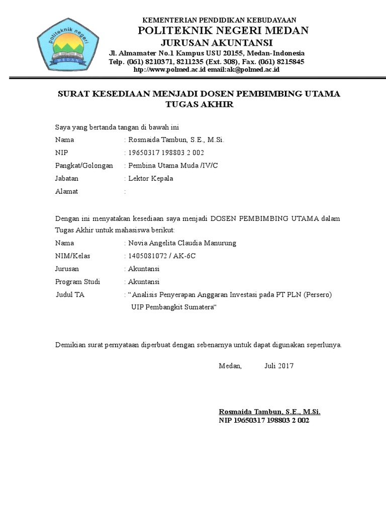 Daftar Nilai Dosen Pembimbing Pkl Docx Politeknik Negeri Medan