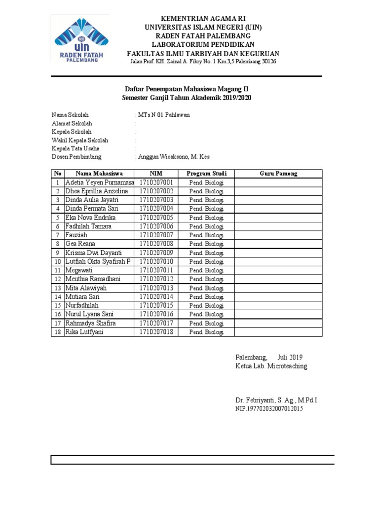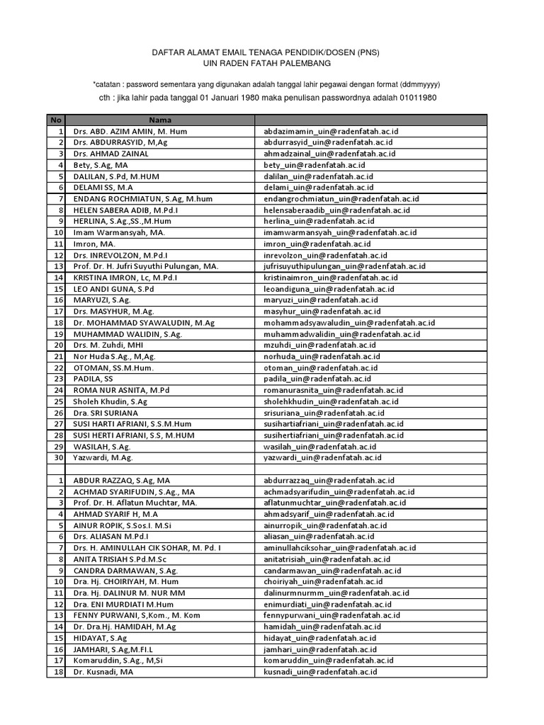 Daftar Nama Dosen Uin Raden Fatah Palembang