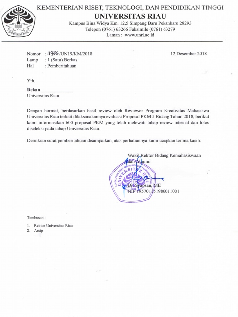 Pengumuman 600 Nama Lolos Pkm Tingkat Universitas Riau Tahun 2018 Pdf