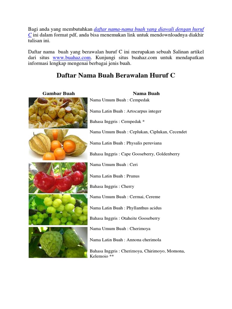 Daftar Nama Buah Berawalan Huruf C