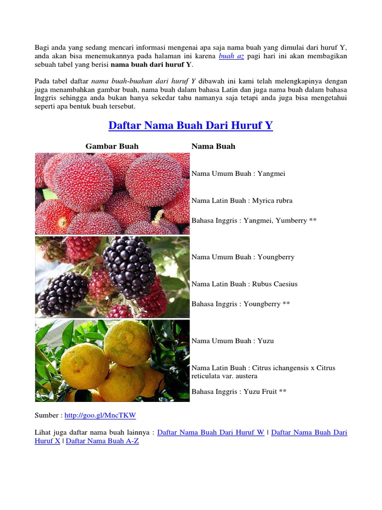Nama Buah Dari Huruf Y