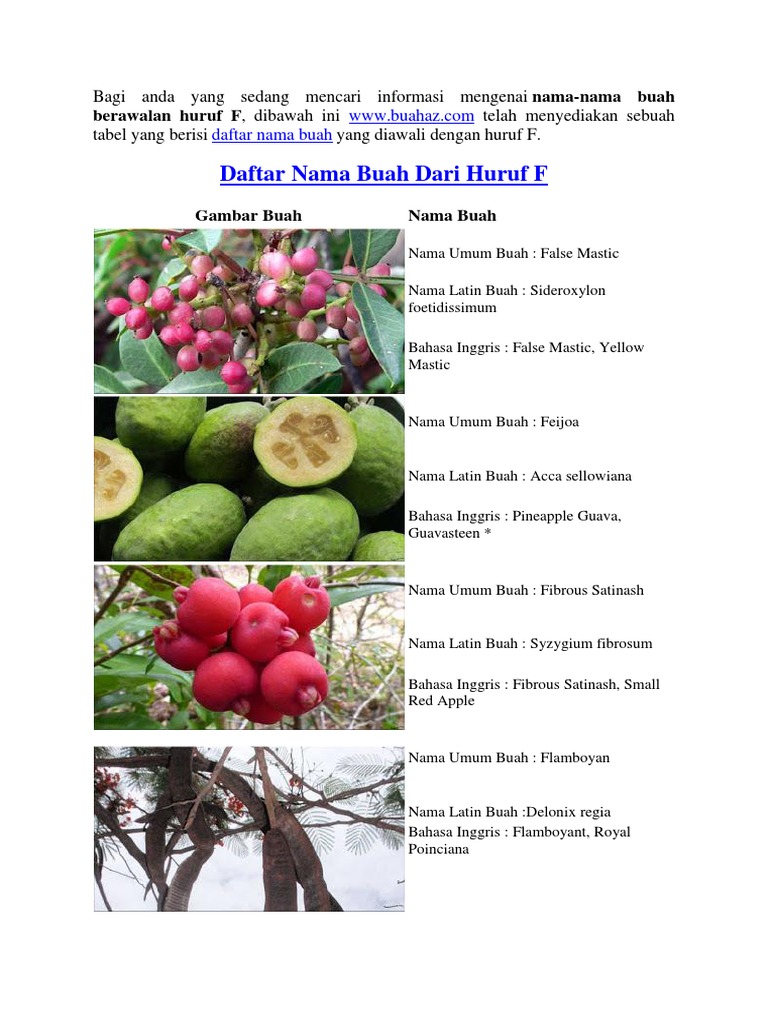 Daftar Nama Buah Dari Huruf F