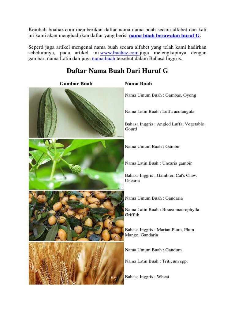 Nama Buah Berawalan Huruf G Www Buahaz Com