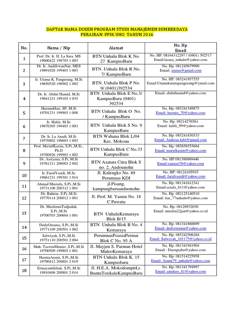 Daftar Nama Dosen Unp