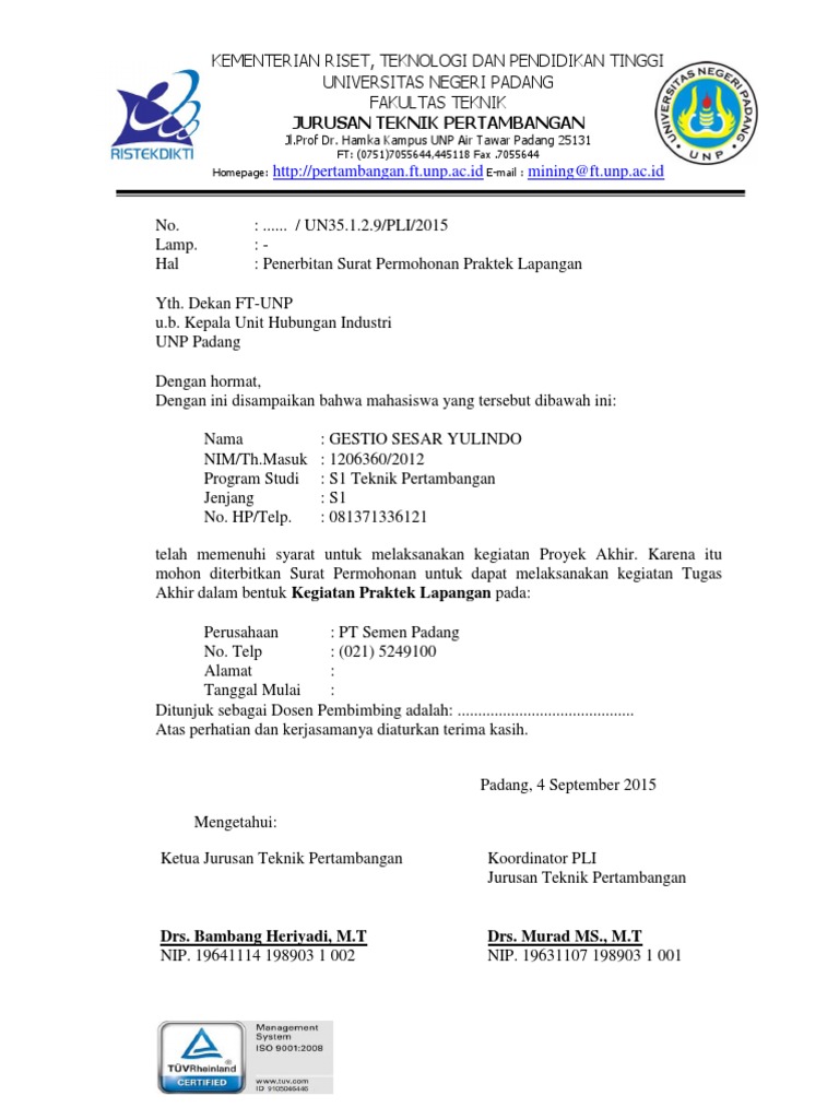 Panduan Ta S1 Teknik Pertambangan Ft Unp
