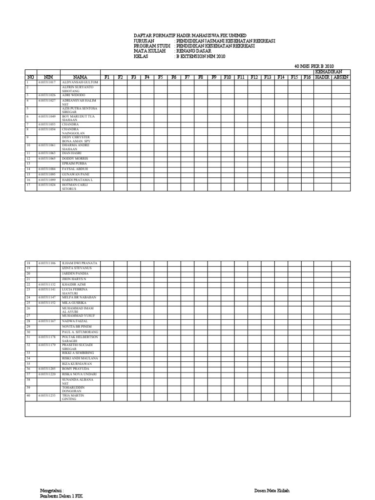 Daftar Formatif Hadir Mahasiswa Fik Unimed