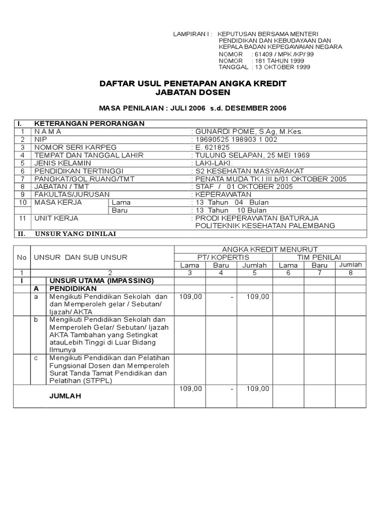 Daftar Usul Penetapan Angka Kredit Jabatan Dosen