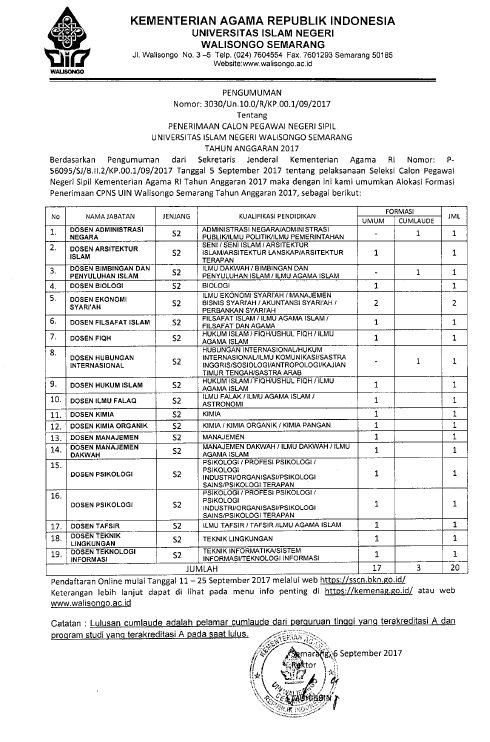 Penerimaan Cpns Universitas Islam Negeri Uin Walisongo Semarang