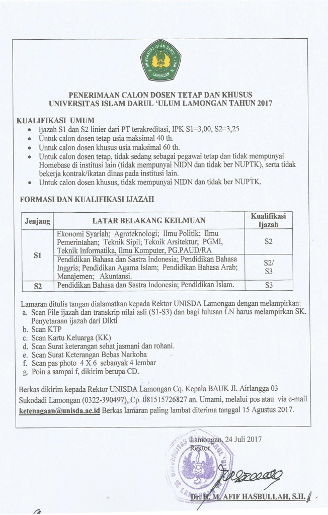 Unisda Lamongan Buka Lowongan Dosen Cek Formasinya Di Sini Tabayuna