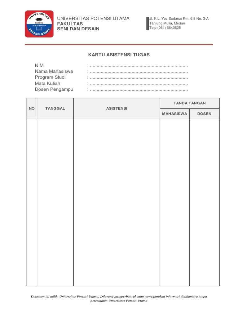 Fakultas Seni Dan Desain No Tanggal Asistensi Tanda Tangan