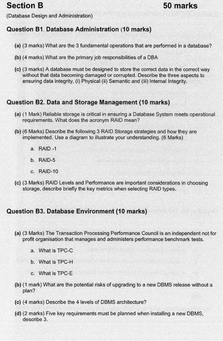 Solved 50 Marks Section B Database Design And Administra