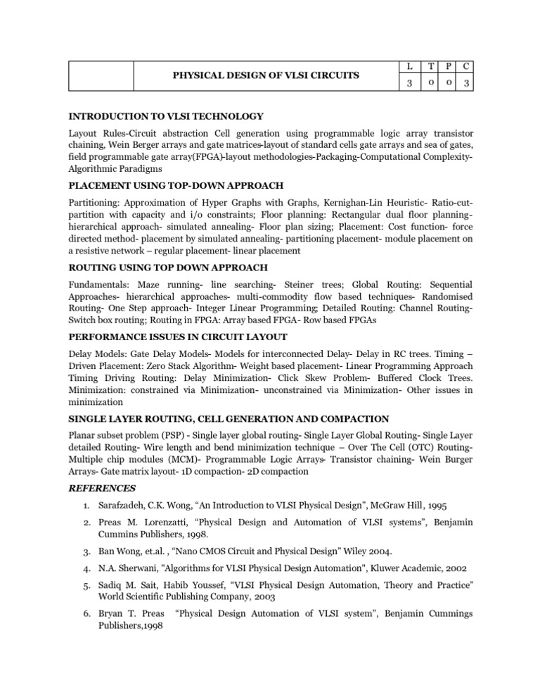 Physical Design Of Vlsi Circuits