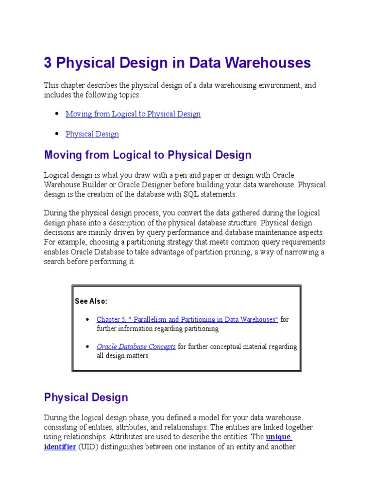 3 Physical Design In Data Warehouses Database Index Data Warehouse