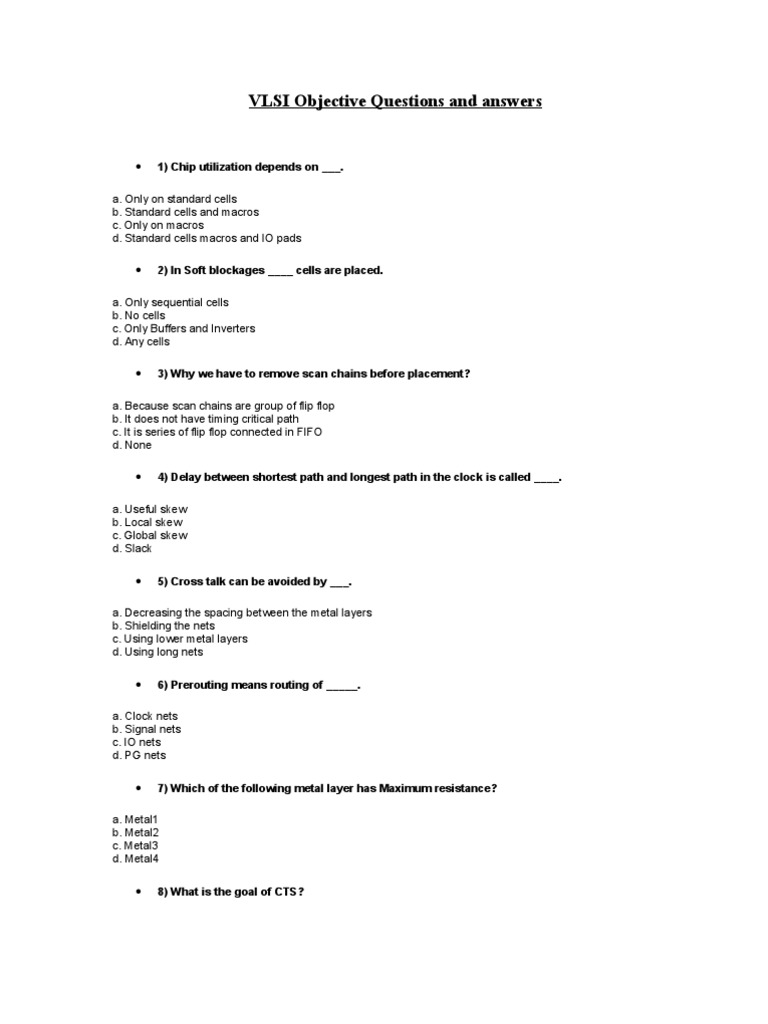 Vlsi Objective Questions And Answers 1 Electronic Engineering