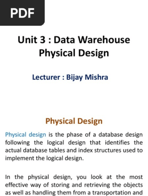3 Physical Design In Data Warehouses Database Index Data Warehouse