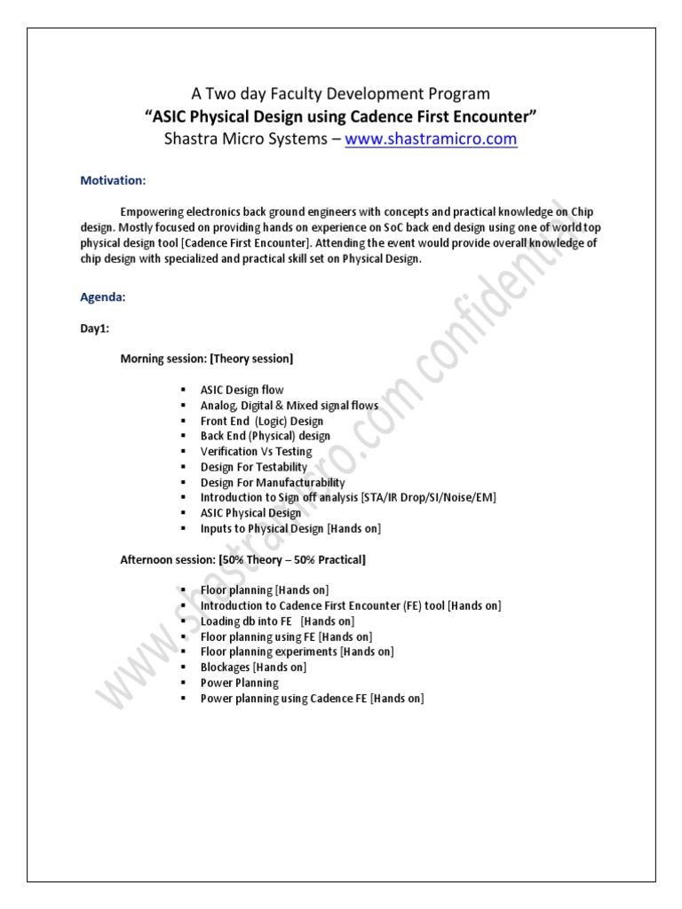 Two Day Fdp On Asic Physical Design Using Cadence First Encounter